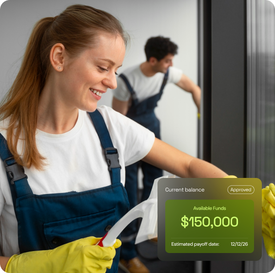 Provide a few details about your cleaning business. There’s no paperwork or credit pull required. We begin reviewing right away.